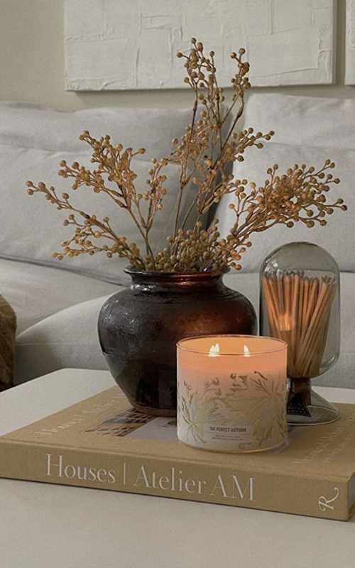 Stack a few classic books on your coffee table or console and top them with a candle, pinecone, or tiny pumpkin. It’s the perfect combo of cozy + styled and brings a lived-in warmth to any surface.