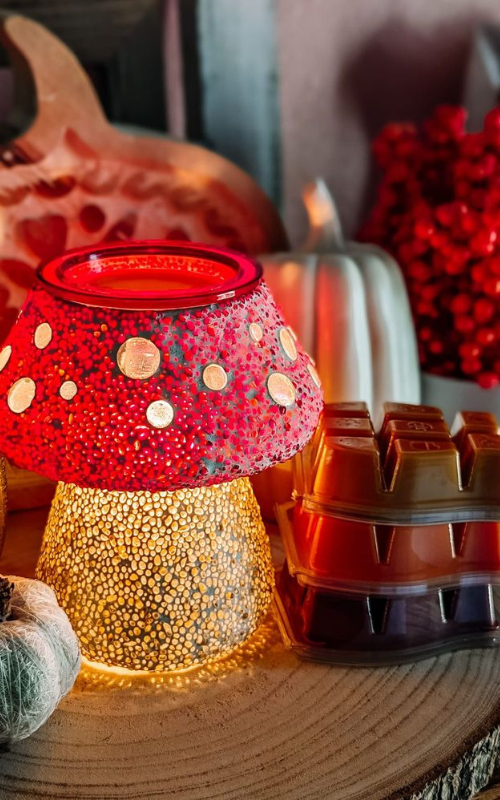 Scents trigger emotions and memories. Place candles, essential oils, or simmer pots around your home with fragrances like cinnamon, apple cider, pumpkin spice, clove, or sandalwood. It’s an easy way to make your space smell like fall all day long.