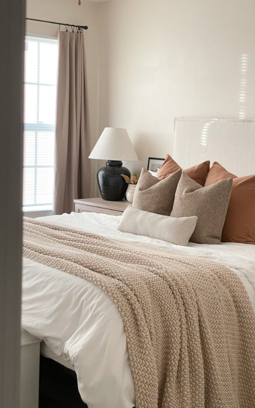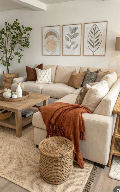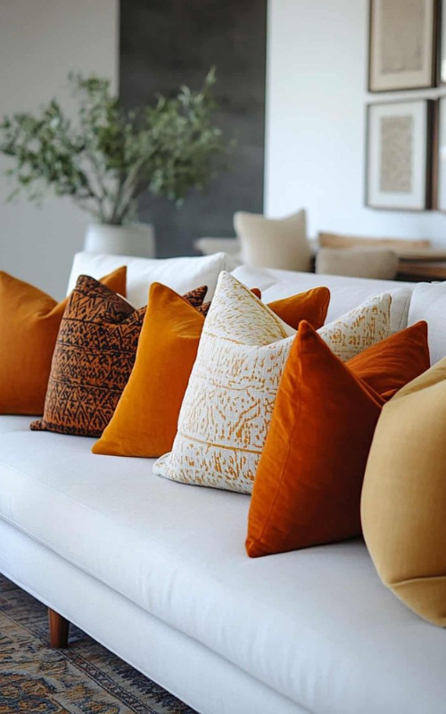 Nothing says cozy like a pile of plush pillows and thick throws. Mix and match textures—think cable knit, faux fur, velvet, and linen—in seasonal hues like burnt orange, mustard, and chestnut. Drape them over your couch, armchairs, or bed for an instantly snug vibe.
