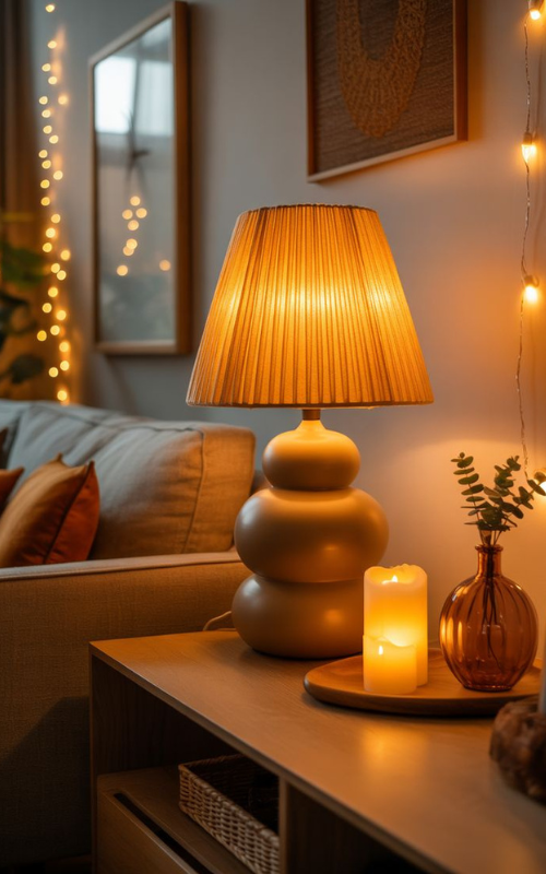 As natural daylight fades earlier, turn your focus to layered lighting. Use amber-toned bulbs, lanterns, or string lights to add a soft, ambient glow. Table lamps with linen or burlap shades can also add visual warmth to corners and reading nooks.