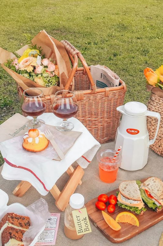 What to Pack: Sandwiches, pastries, fresh fruit, vintage books