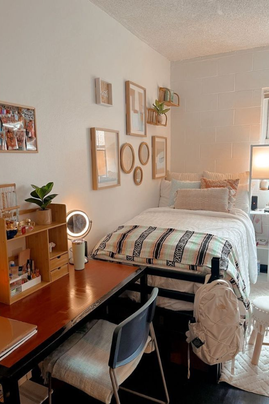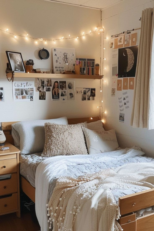 16. Classic Cozy Dorm With Soft Textures and a Personal Touch