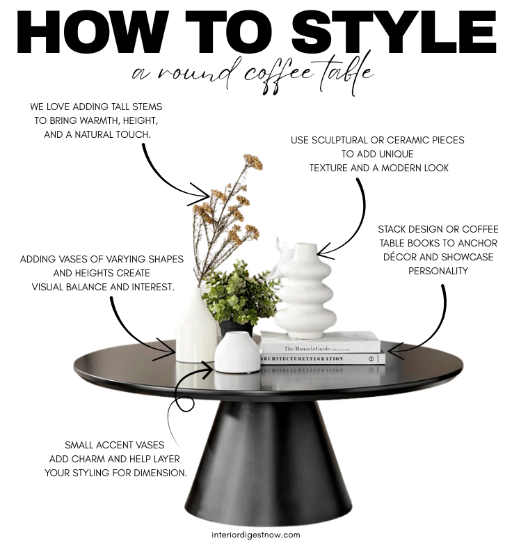 Styling a round surface can be tricky, but a few design principles make all the difference. Think in layers, play with height, and don’t shy away from personality-packed accents. This isn’t about filling the table — it’s about creating visual flow that draws the eye in and feels naturally balanced.