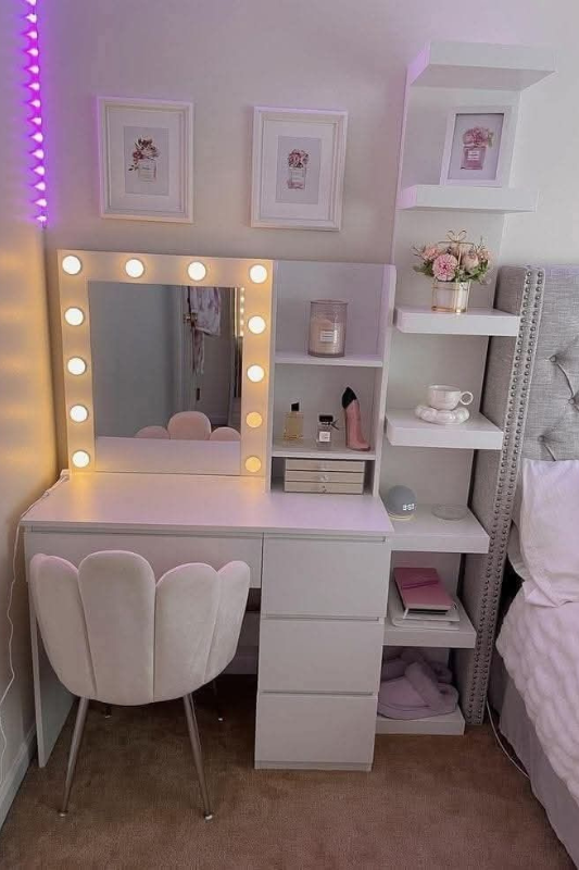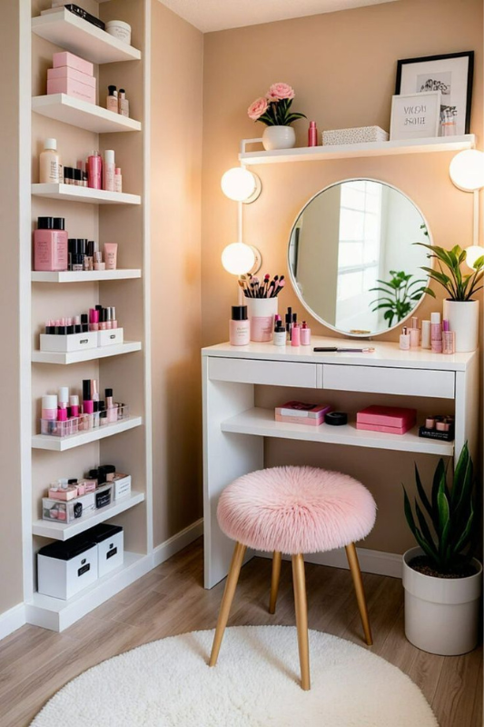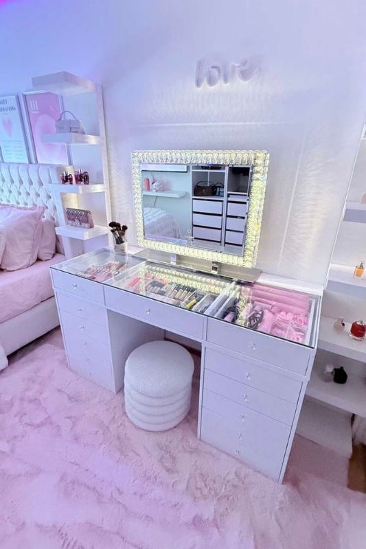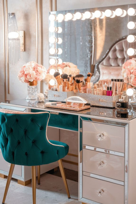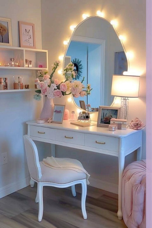 A cluttered surface makes even the nicest vanity feel overwhelming. Be honest about what you actually use keep daily items on display, and store the rest. Once a month, wipe down surfaces (because, yes, makeup dust is real), toss expired products, and untangle your jewelry. This quick routine will keep your table fresh and help you avoid that creeping clutter spiral.