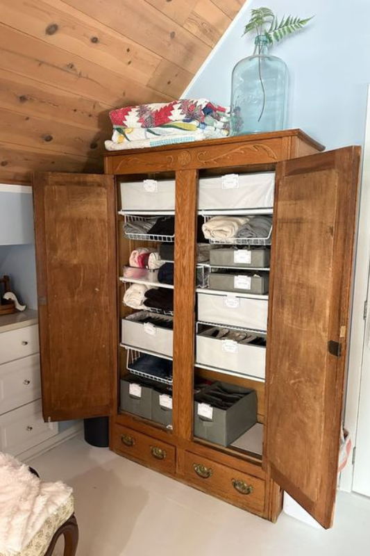 An armoire can act as both a storage piece and a design feature. It provides enclosed storage for clothing and accessories while adding character to the room. Choosing a piece that complements the room’s style ensures it feels intentional rather than oversized.