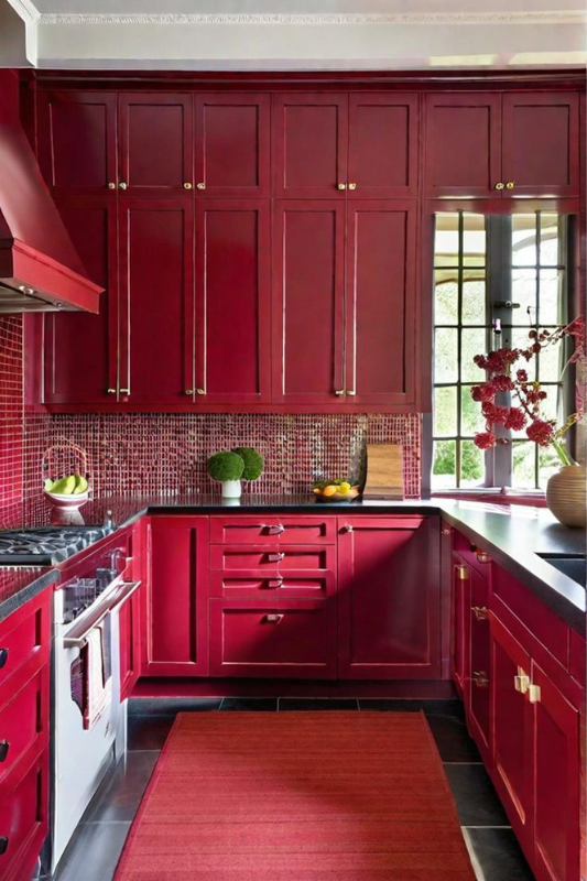18. Bold Burgundy Kitchen with Deep Red Accents