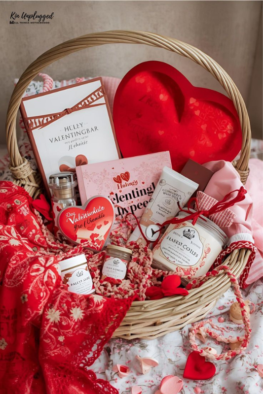 A Valentine’s Day gift basket can also be deeply encouraging and personal. This idea focuses on comfort, reflection, and affirmation rather than traditional romance.