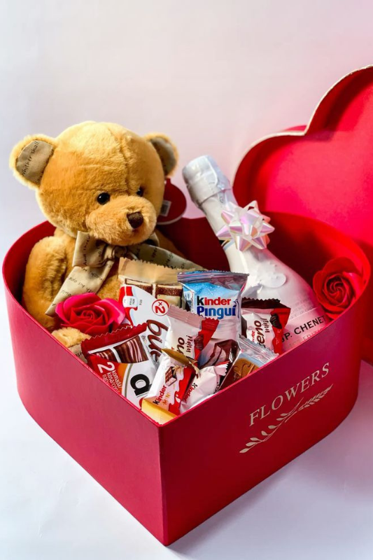 Sometimes the most familiar Valentine’s Day symbols are popular for a reason. A soft plush paired with sweets creates a gift that feels comforting and nostalgic.