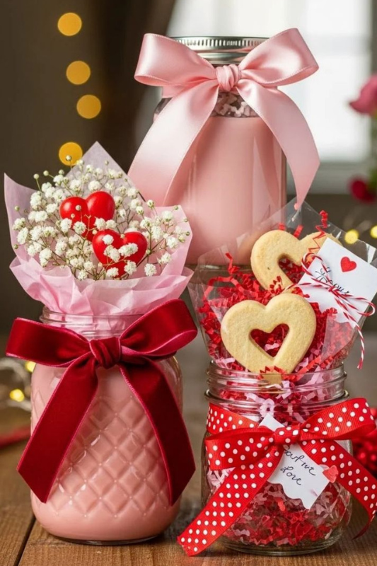 This Valentine’s Day gift basket idea is all about small details and charm. Using jars instead of traditional baskets gives the gift a homemade, thoughtful feel that instantly feels more personal. These are the kinds of gifts that look simple but carry a lot of intention.