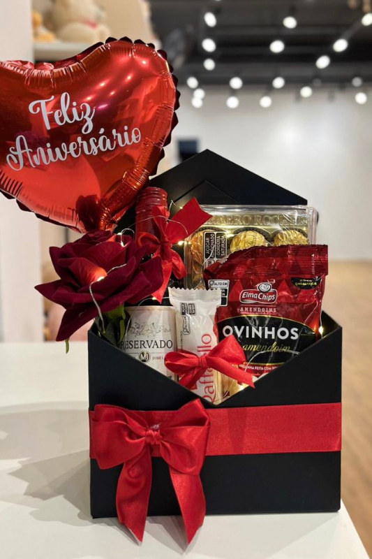 The key to this basket is presentation. Keeping the colors rich and the arrangement structured helps it feel intentional rather than rushed. This option works well for anniversaries, Valentine’s Day dinners, or anyone who enjoys a more grown-up style of gifting.